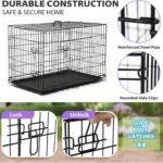 Provide your pet with a safe and comfortable space using the BestPet 48" Foldable Dog Crate. Built from durable black metal, it features double doors with secure slide-bolt latches for easy access and added safety. The leakproof removable tray ensures quick cleaning, while the foldable design allows convenient storage and transport. Ideal for home training, travel, or everyday use, this kennel offers a secure, well-ventilated, and reliable enclosure for dogs of various sizes.