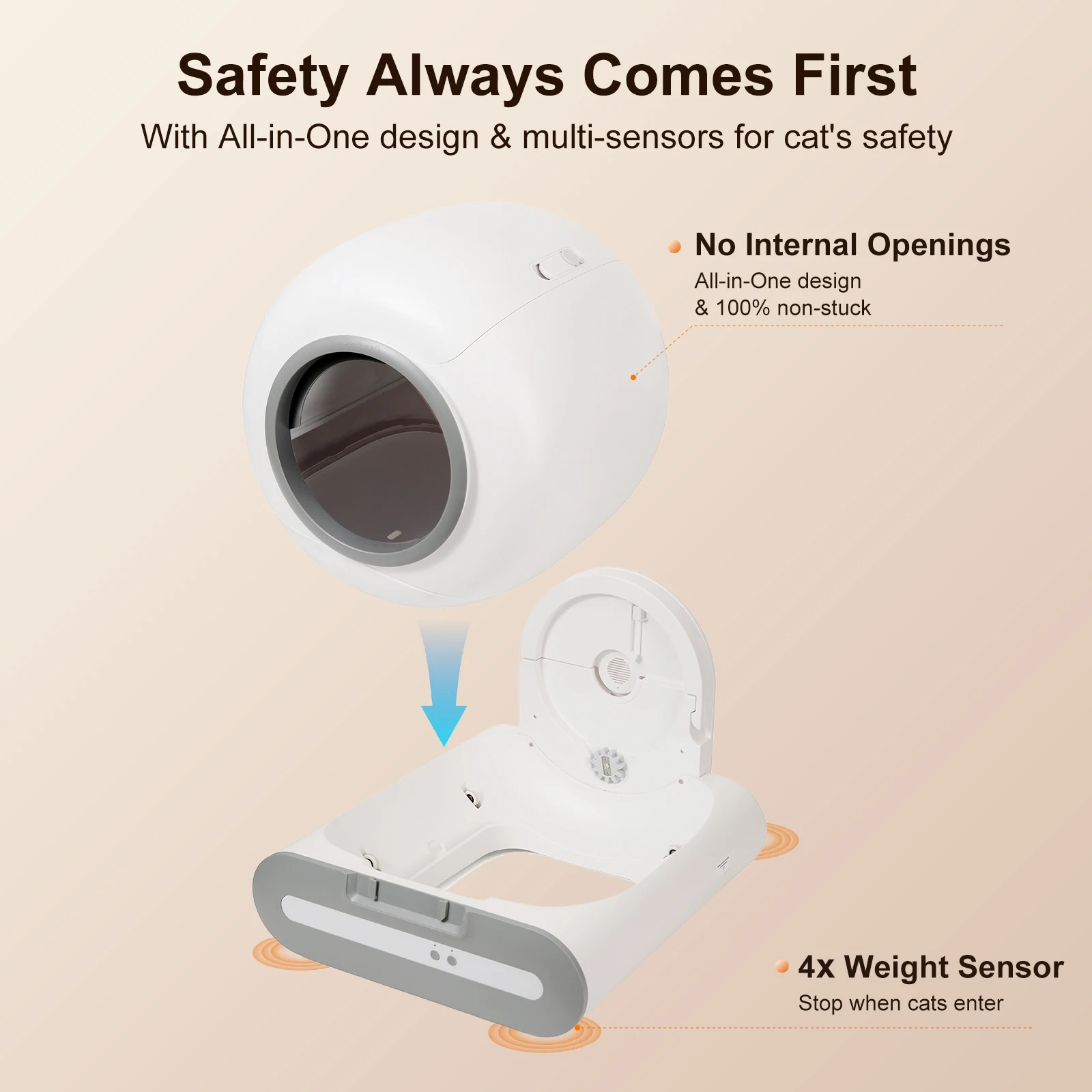 The sealed design helps reduce odor, mess, and litter tracking, while the included litter mat and trash bags make cleanup even easier. Smart, hygienic, and efficient, this litter box provides a hands-free solution for a cleaner home and happier cats.