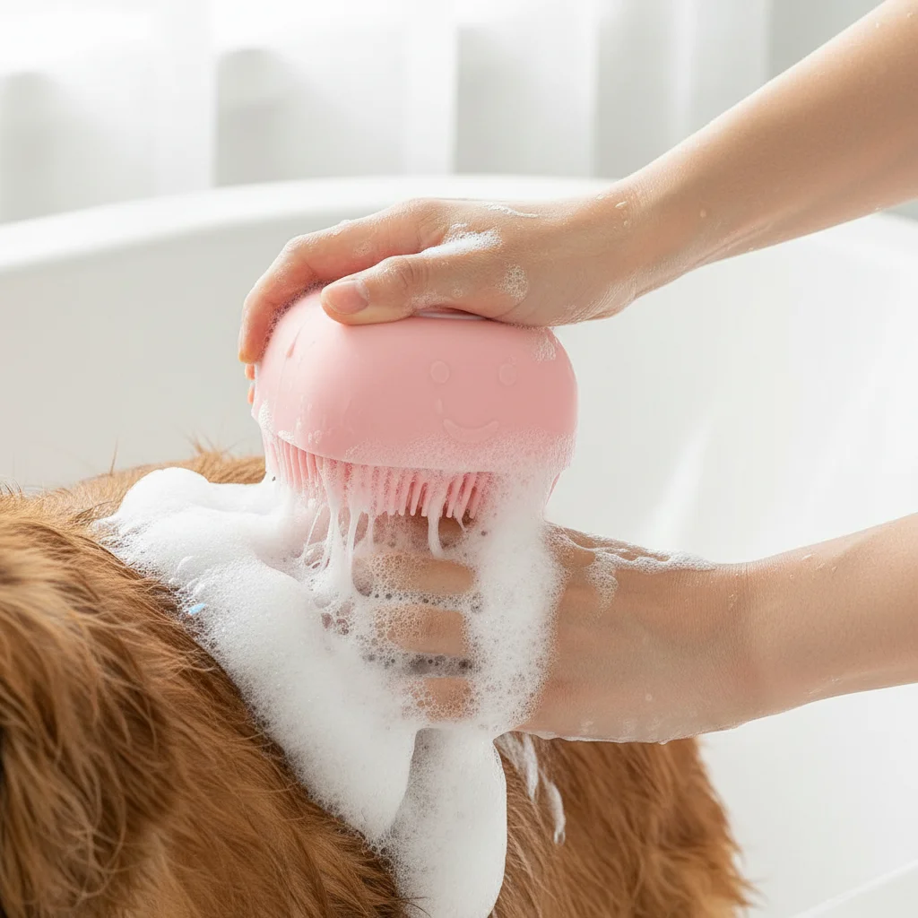 Perfect for both dogs and cats, this grooming tool removes dirt, loose fur, and odors while improving coat softness and shine. Easy to hold and use during showers, it turns grooming into a stress-free, bonding experience for you and your pet.